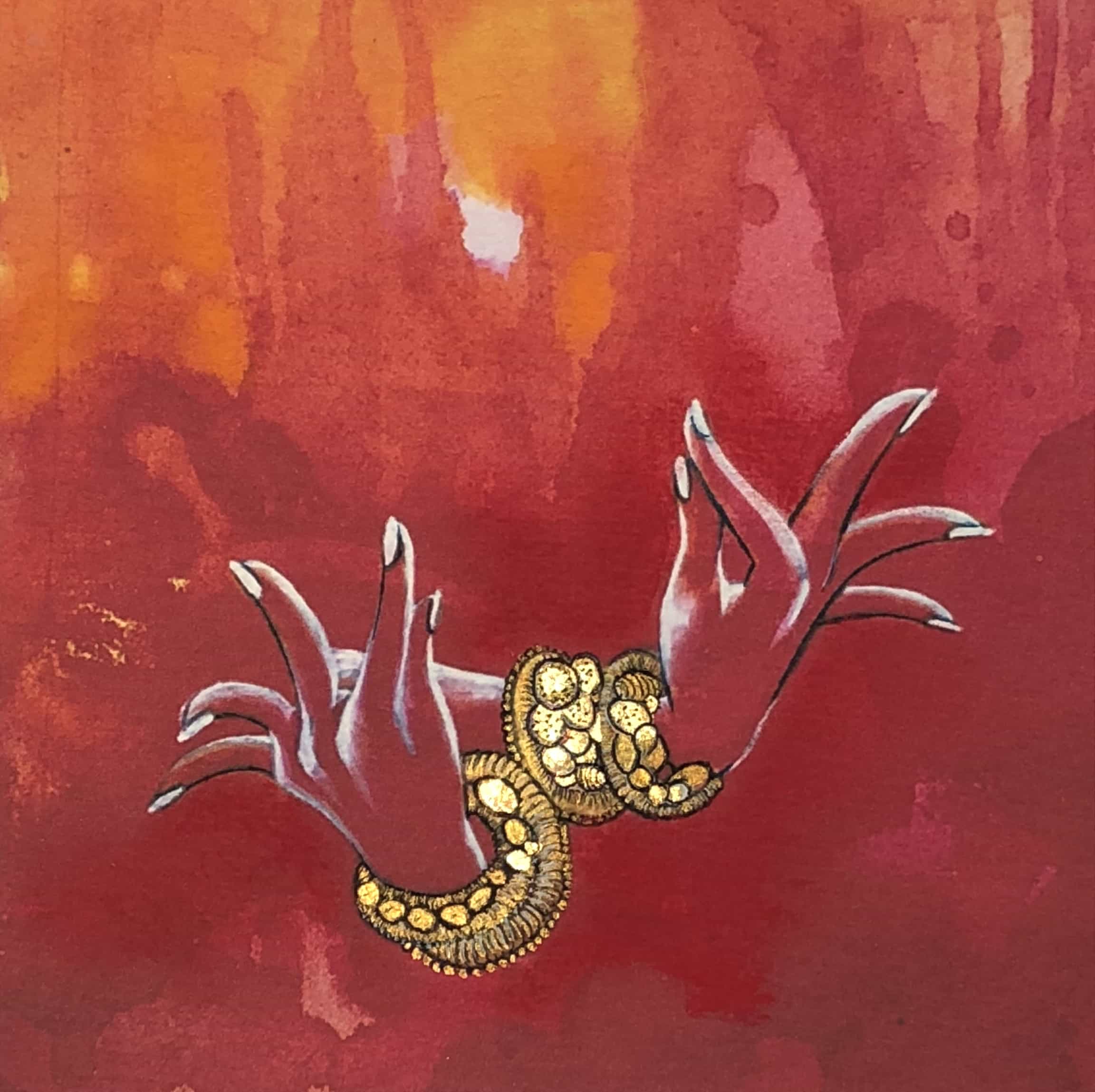 (Acrylique, feuille d'or et encre sur toile 20 x 20 cm)