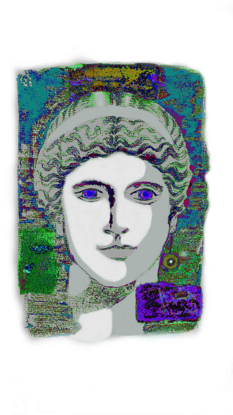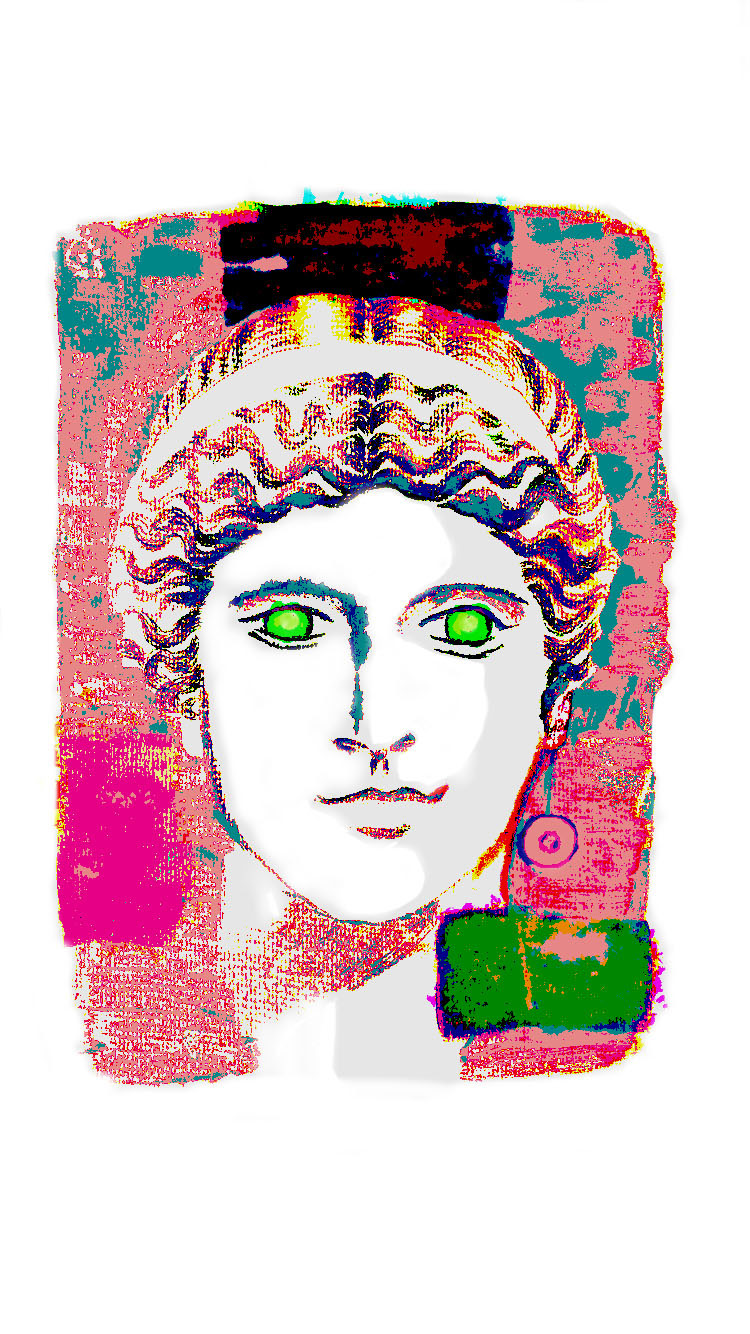 HERA AUX YEUX VERTS FOND ROSE