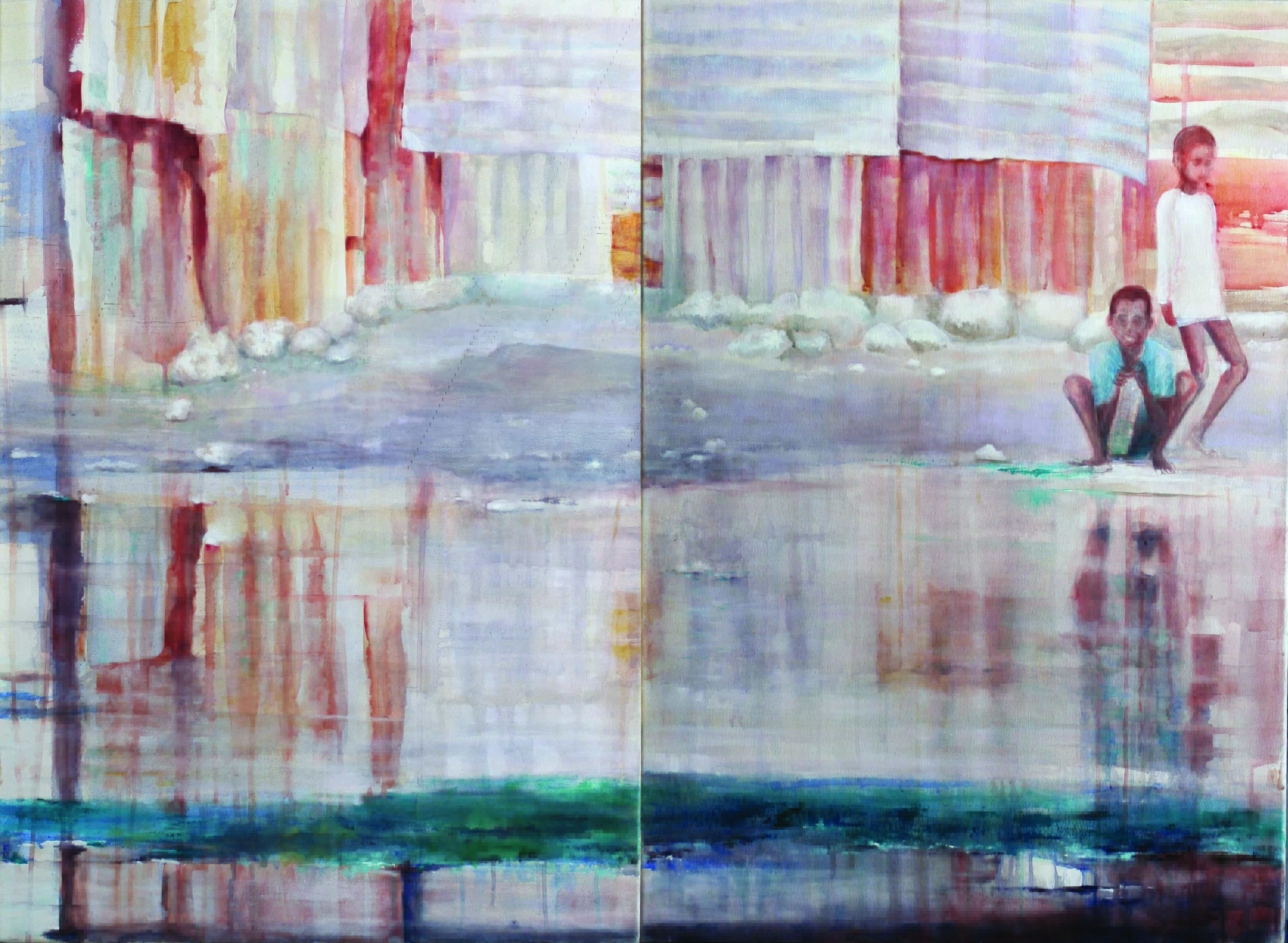 (Acrylique sur papier 500g marouflé sur bois - 100 x 55 cm)
